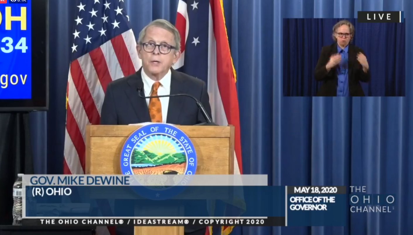 COLUMBUS, OH—Accompanied by a detailed chart, Ohio Governor Mike Dewine asserted Thursday the importance of keeping masks on while dining out. “This a slow, slow process” he reiterated. “We don’t want to roll back all the work we have done.”